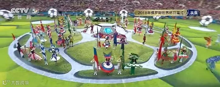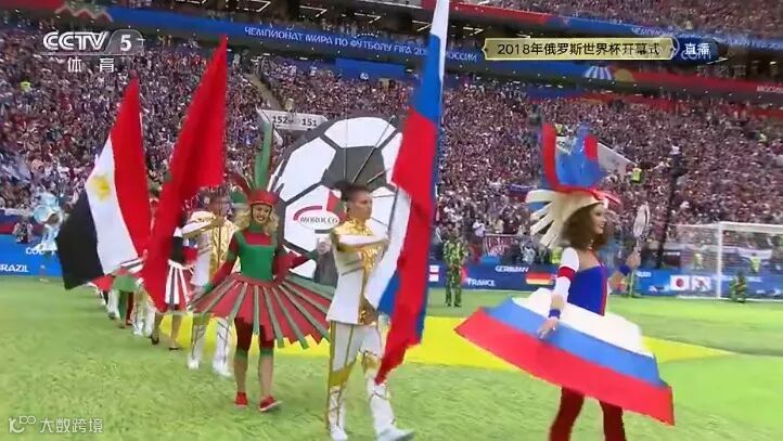 开幕式上,身穿32个参赛国国旗的舞者入场