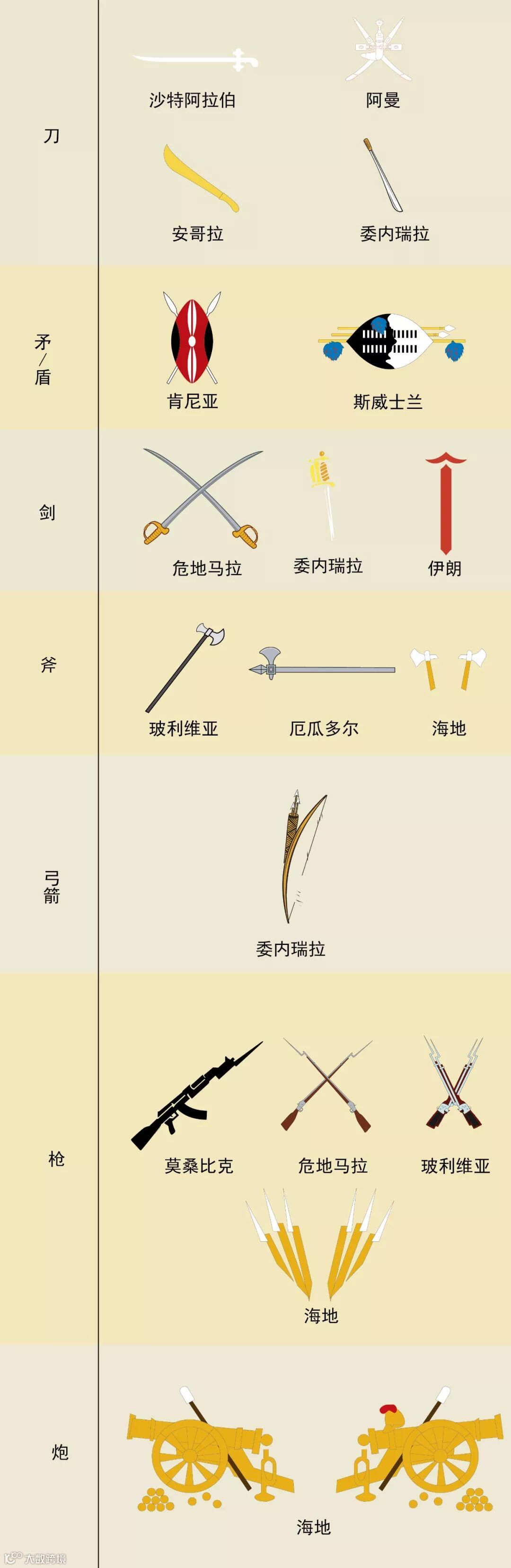 冷、热兵器还都有,莫桑比克的AK47和海地的大炮尤其抢眼。