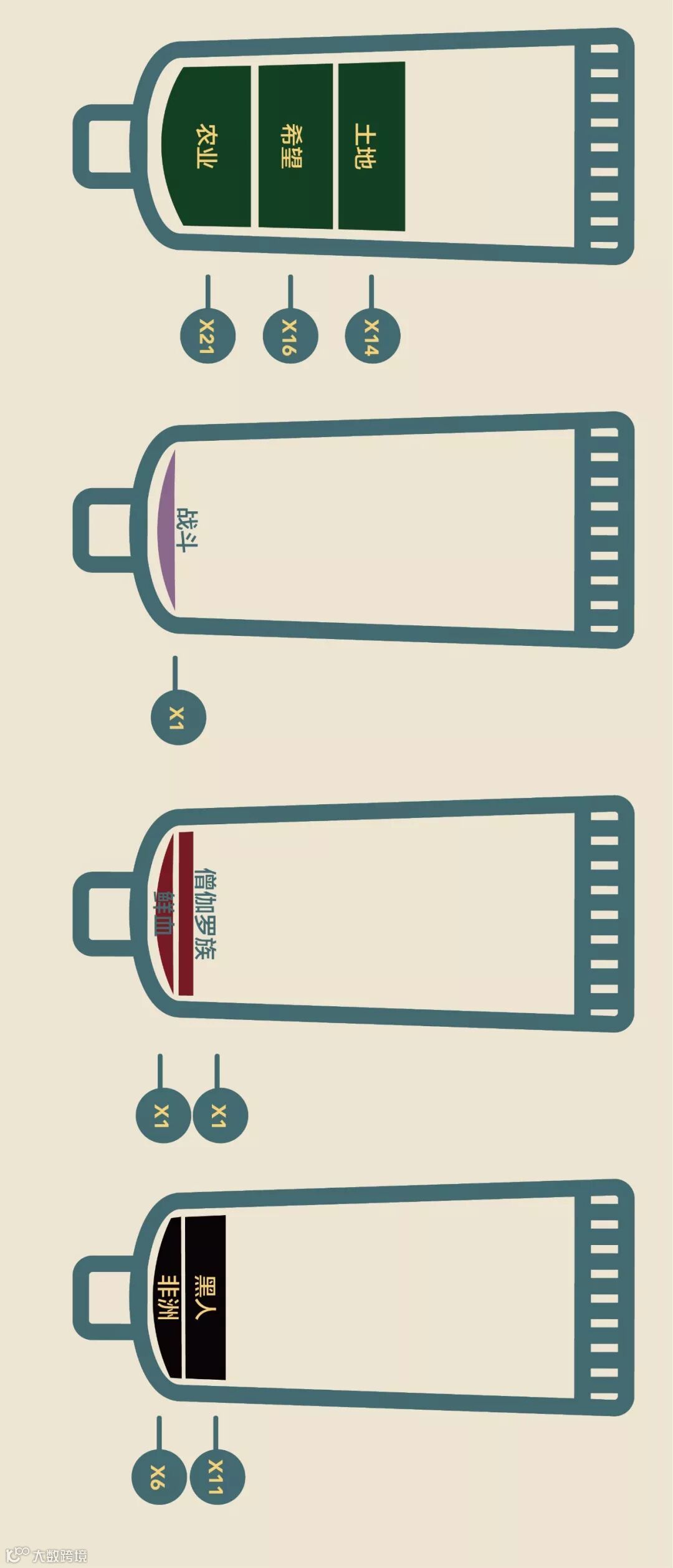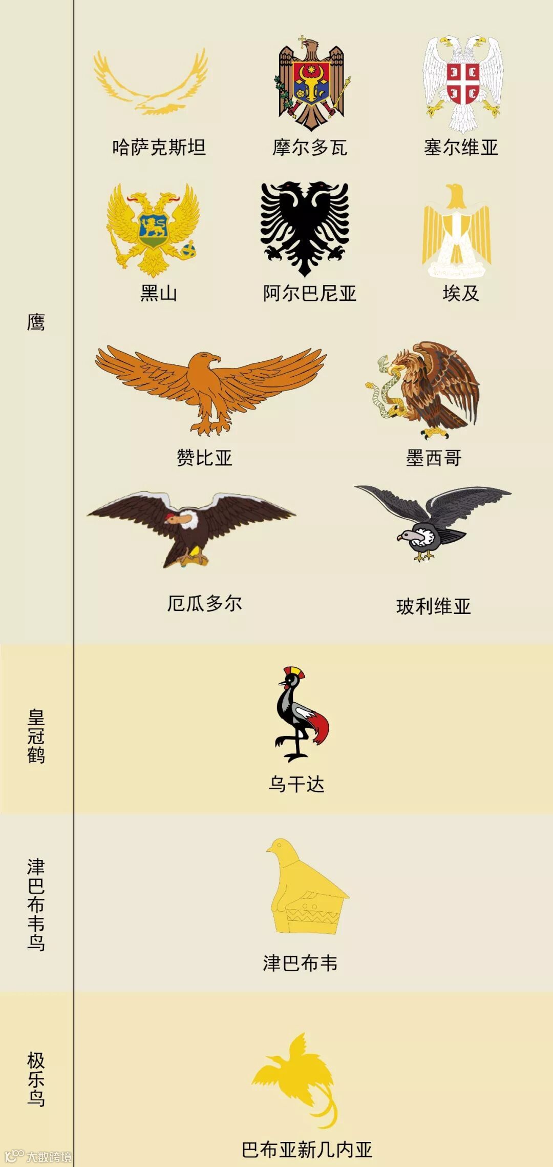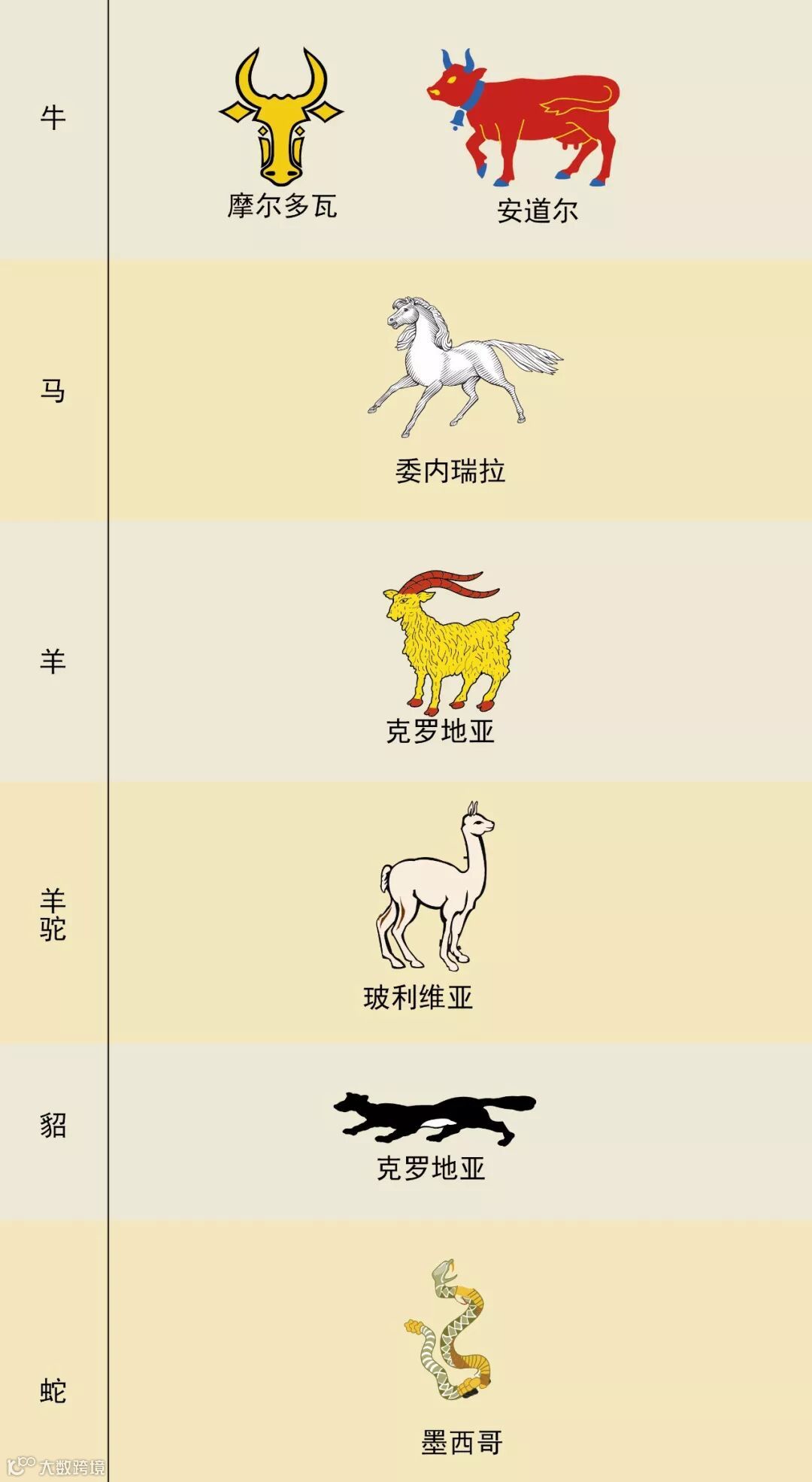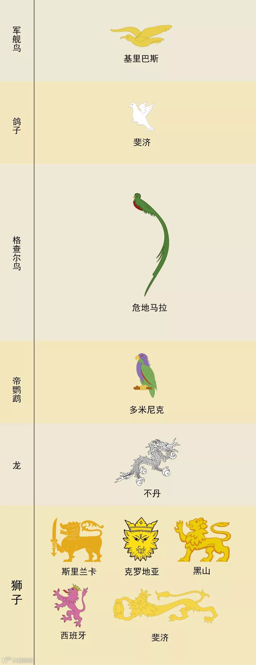 为了有更直观的视觉效果,我们把所有的动物都从国旗上抠下来,放在一起看。