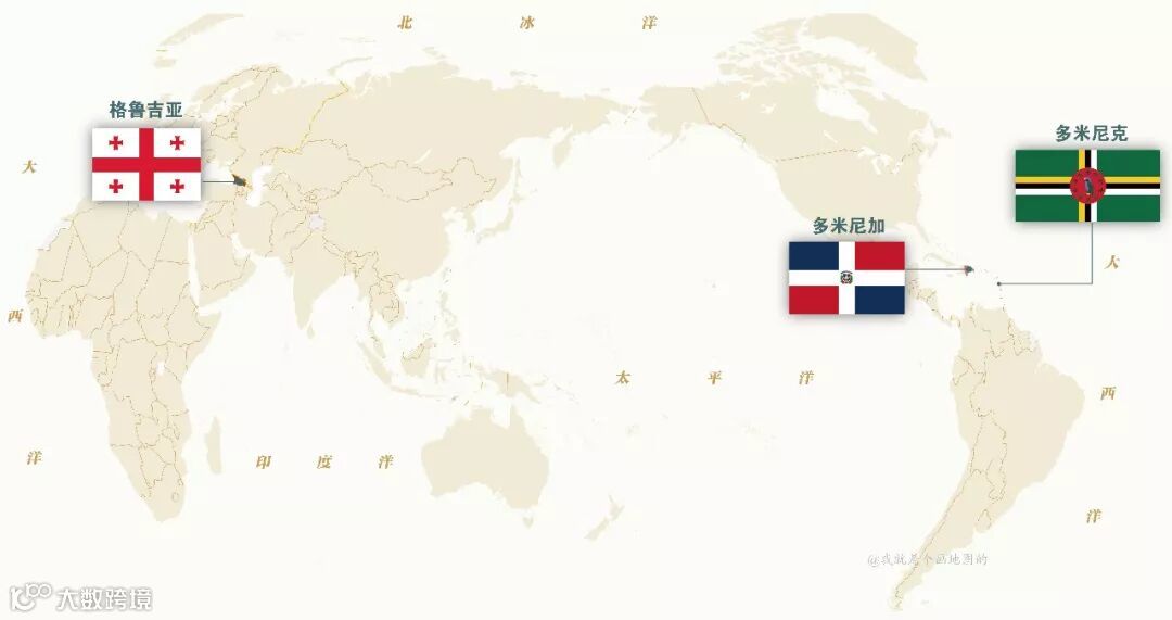 这三面国旗中的十字代表的都是基督教信仰,多米尼加和多米尼克是位于加勒比海的两个岛国,可以叫他们“夹克组合”。而位于欧亚分界线的格鲁吉亚,国旗上的十字还有个特定的名称——圣乔治十字。如果你对足球运动很感兴趣,对圣乔治十字一定不会陌生,英格兰的旗帜即为圣乔治十字。