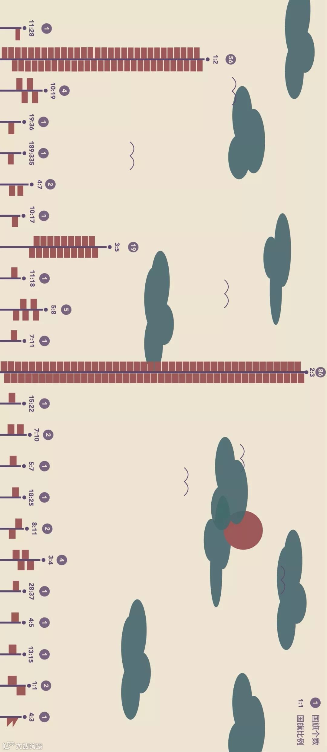 但这两种比例的国旗加起来只有五幅。反而另外三种比例的国旗脱颖而出,分别是: