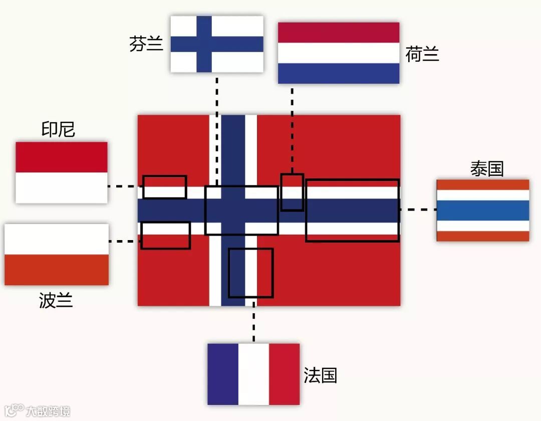最后,介绍一款最包容的国旗,挪威。它把其他六个国家的国旗融合在了一起,完美!