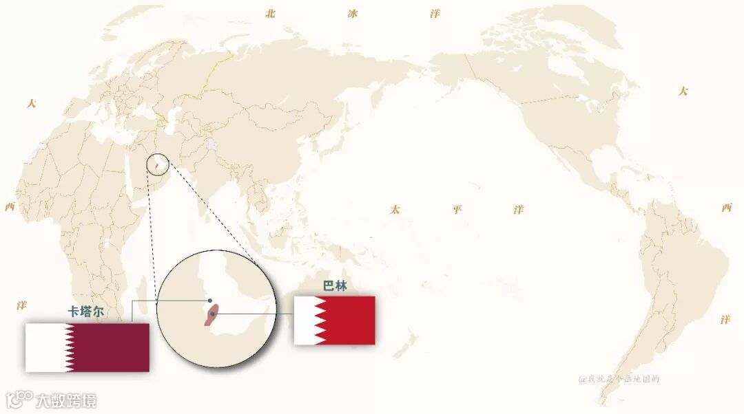 两个位于波斯湾的相邻小国,巴林国旗上五个锯齿表示伊斯兰教的五功——念功、拜功、课功、斋功、朝功,而卡塔尔国旗上的九个锯齿代表卡塔尔国是由九个酋长国组成的。区别这两个国旗的方法是,谁国家名长,国旗越长,锯齿越多,颜色越深。