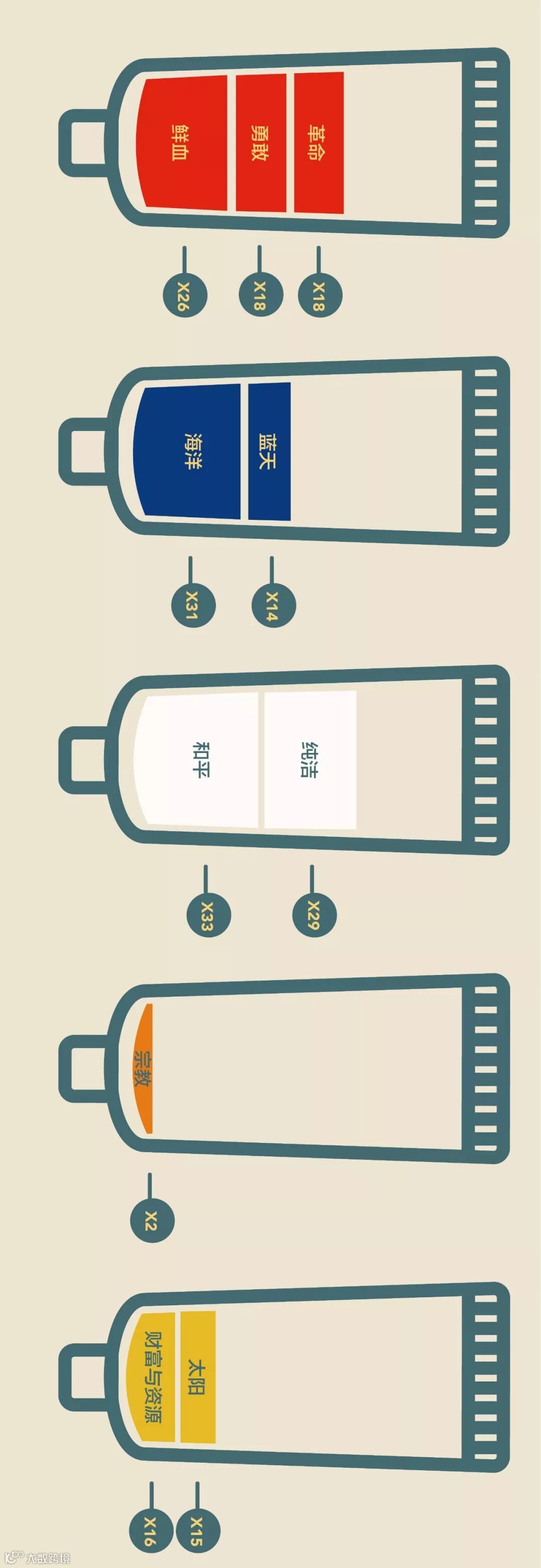 我们又做出一张图,把各主要颜色代表的主要含义统计了一下。