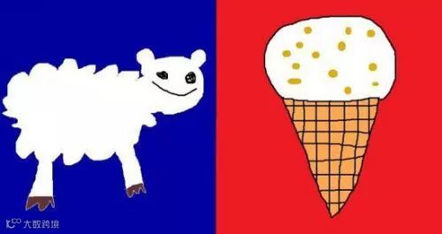 设计者说:这表示我们国家有好多绵羊,也好爱廉价冰淇淋,不管你们喜欢蓝色还是红色,我都有