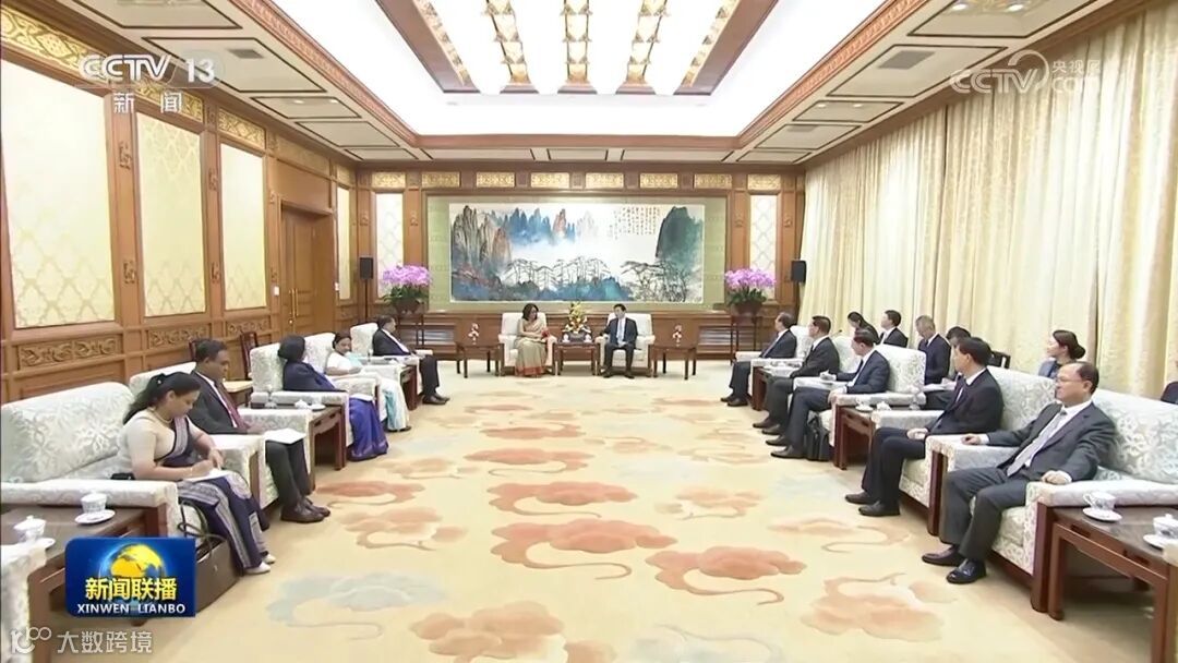 (新闻联播):全国政协主席王沪宁13日在京会见来华出席全球妇女峰会的斯里兰卡总理阿马拉苏里亚。
