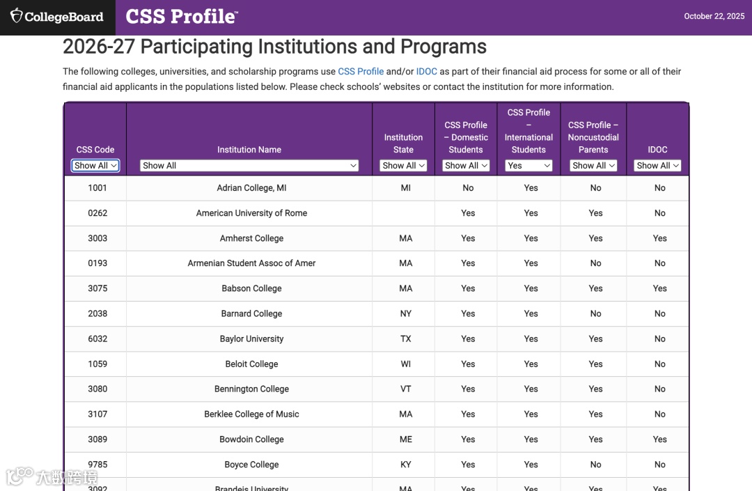 直接决定 “净学费”:实际支付学费 = 标价学费 - 奖学金 / 资助,CSS Profile 是学校判断你该 “少掏多少钱” 的核心依据