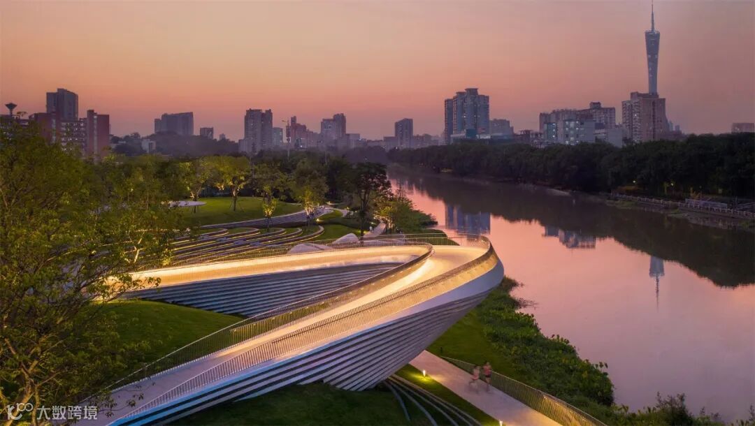 ↑黄埔涌河畔的琶洲南滨水公园,通过设计将自然体验与生态栖息地重新带回城市核心