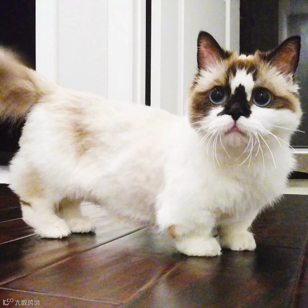 一只非常漂亮的矮脚猫咪,而且喜欢穿各种衣服~