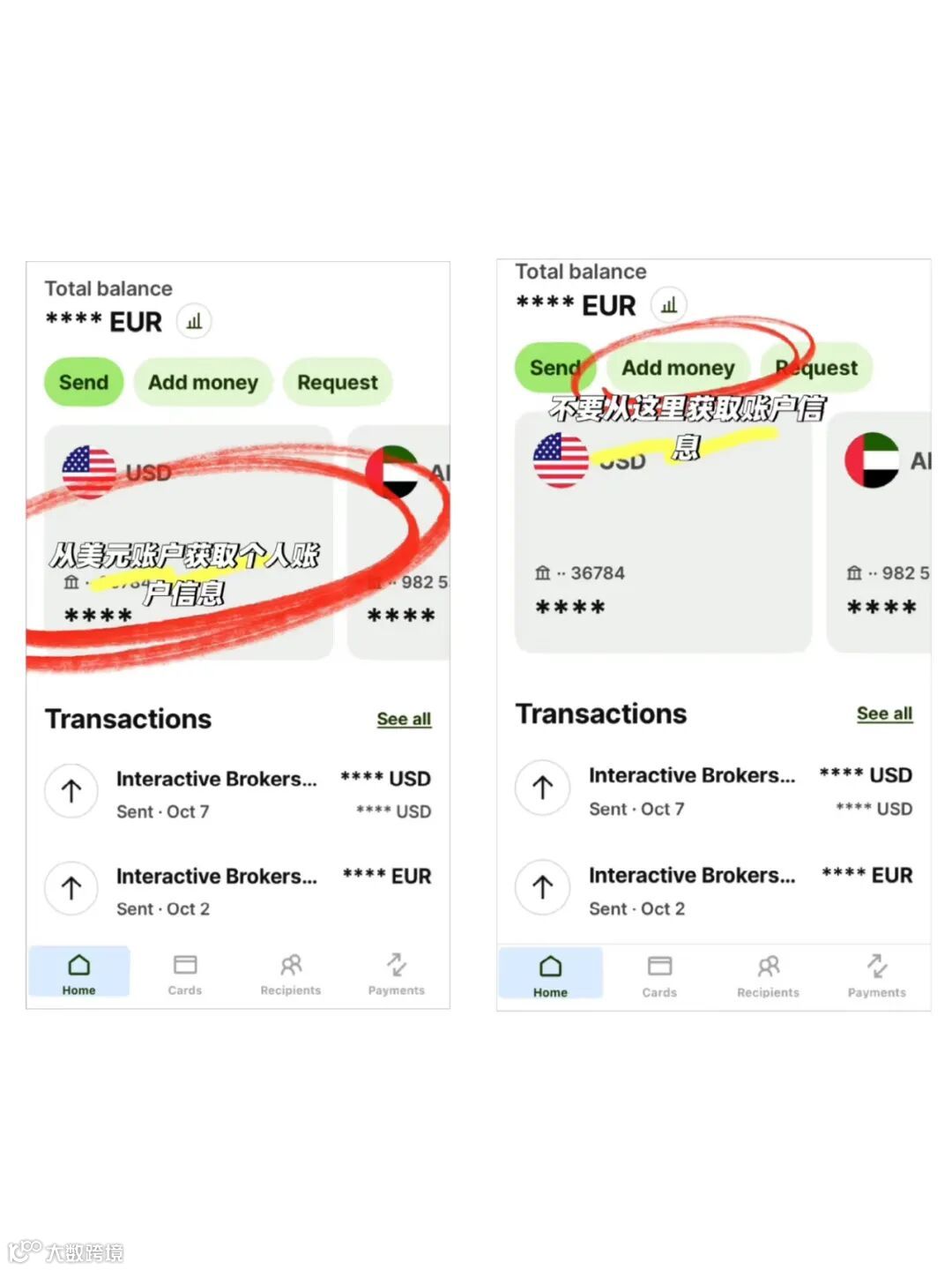 这是Wise入金页面获取个人账户信息的路径(美元账户、英镑账户类同,不多解释🉑不🉑以):
