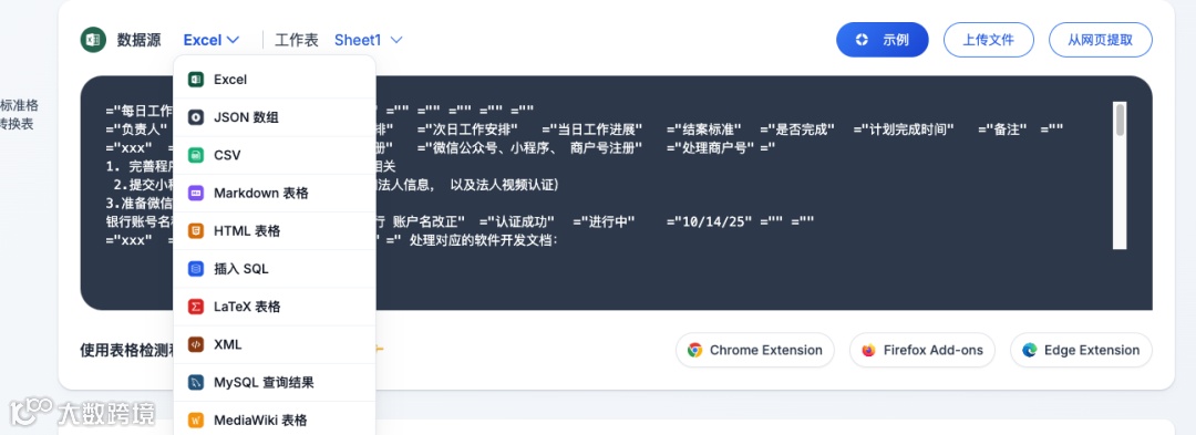 TableConvert 还提供了浏览器扩展程序,让数据处理更加便捷: