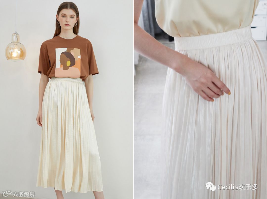 最喜欢的两条是上面的黑白印花▲超收胯、显得人很瘦很窄;以及下面这条▼米色百褶裙,温柔又有力。