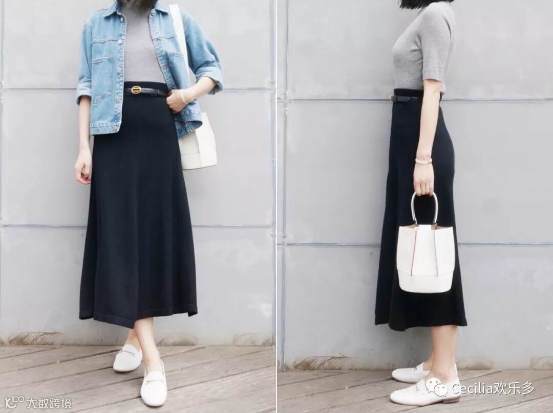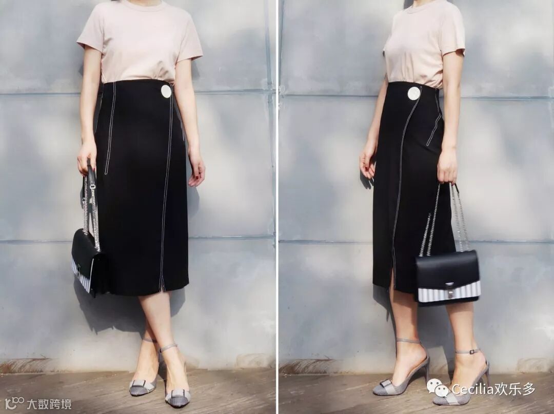 同样也是去年的黑色半裙▼不规则下摆开衩,不容易皱,修饰身材又超好搭配,太心机了!