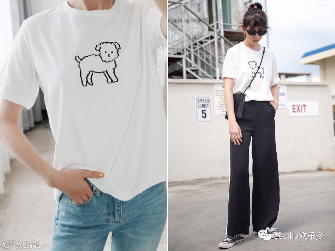轻柔法式的人像/印花T恤也好看,随意配个牛仔单品就清新可人~
