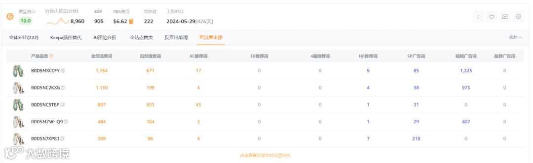 卖家精灵 “流量词对比” 功能:输入自身 ASIN 和 3-5 个竞品 ASIN,导出关键词表格,筛选出竞品独有的高流量词(如 “bluetooth earbuds for running”)。
