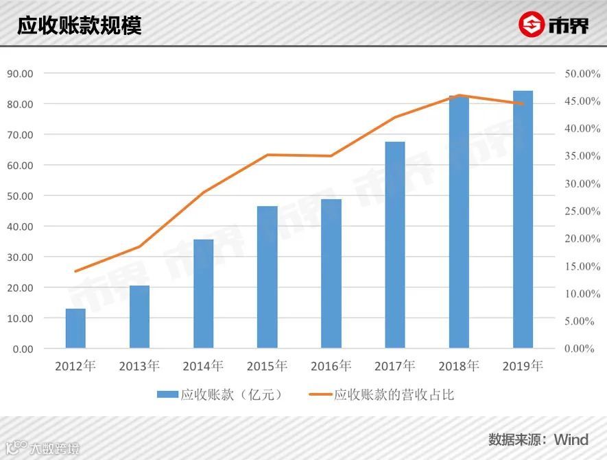 高企的应收账款进一步加剧现金流紧张[k]。应收账款从2010年的5.64亿元增至2019年的84.31亿元,占营收比重升至44.38%,回款周期从43天延长至158天[k]。这与公司医药商业板块扩张及“两票制”政策下医院等强势终端回款周期延长密切相关[k]。