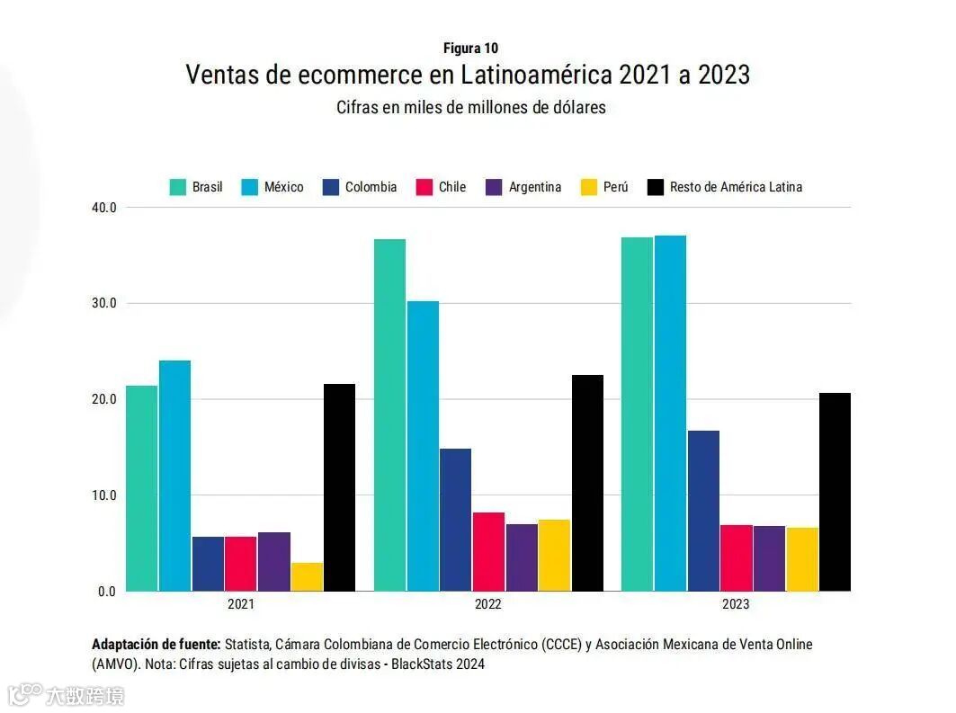 巴西是拉美最大的电商市场,拥有1.5亿互联网用户,电商市场规模达420亿美元。墨西哥紧随其后,规模为370亿美元,因其毗邻美国的地理位置而具备物流优势。