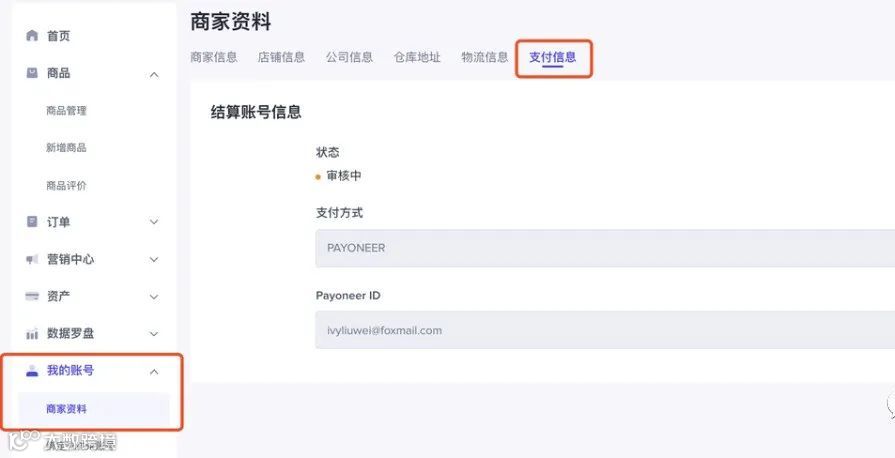 进入【资料】-【结算信息】页面完成银行账户绑定[k]。