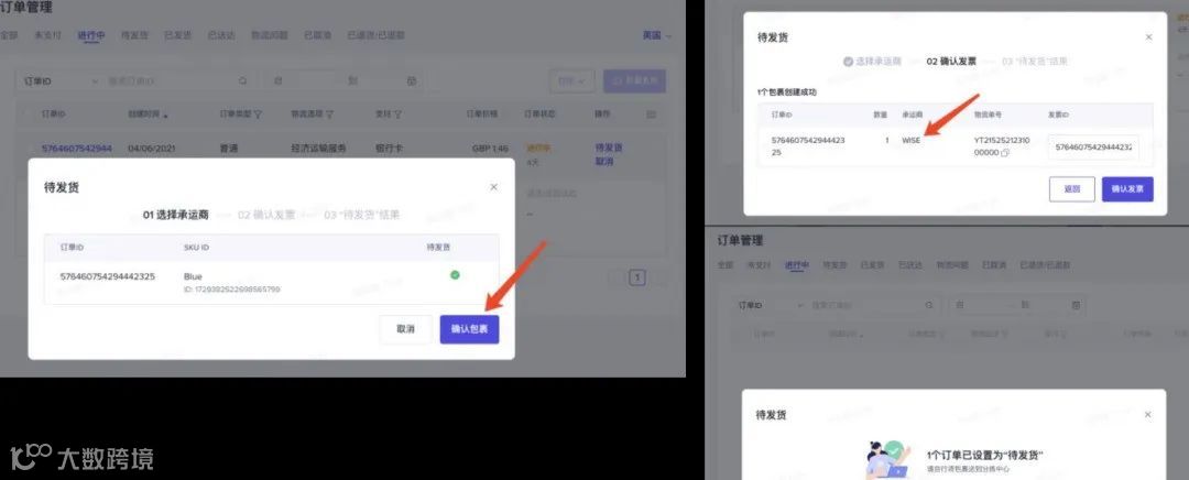 3. 确认包裹与发票后,订单进入待发货状态[k]。