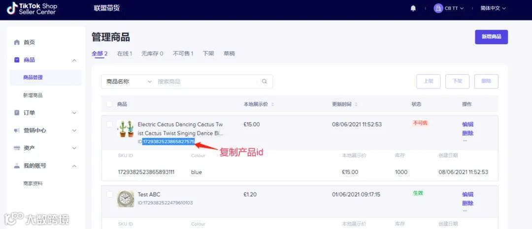 在“商品管理-全部”中可查看商品状态与审核进度[k]。