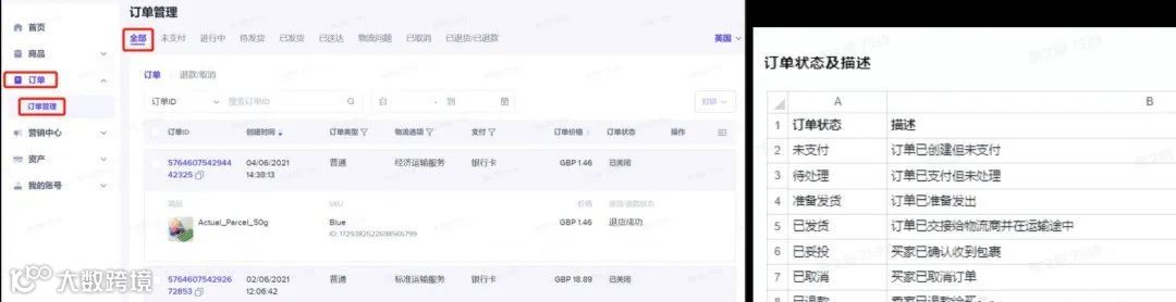 1. 进入“订单-订单管理-全部”查看所有订单状态[k]。