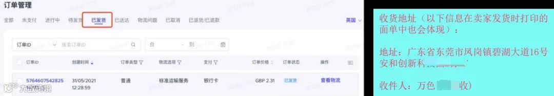 以英国站为例,需在后台配置退货地址与联系方式,用于处理用户退货需求[k]。