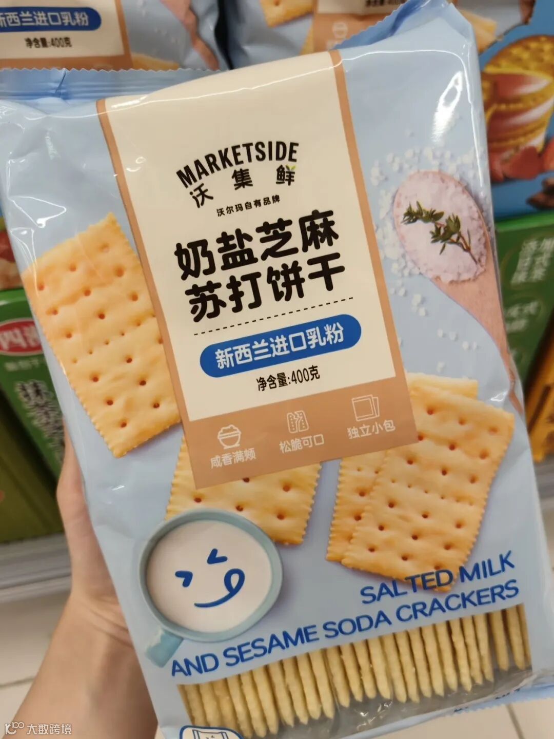沃尔玛自有品牌的海盐苏打饼干性价比很高,是不少人的囤货首选。以沃集鲜海盐芝麻款为例,400克装常售5.99元,采用独立小包装,方便控制食量与保存,配料干净,吃起来负担较轻。