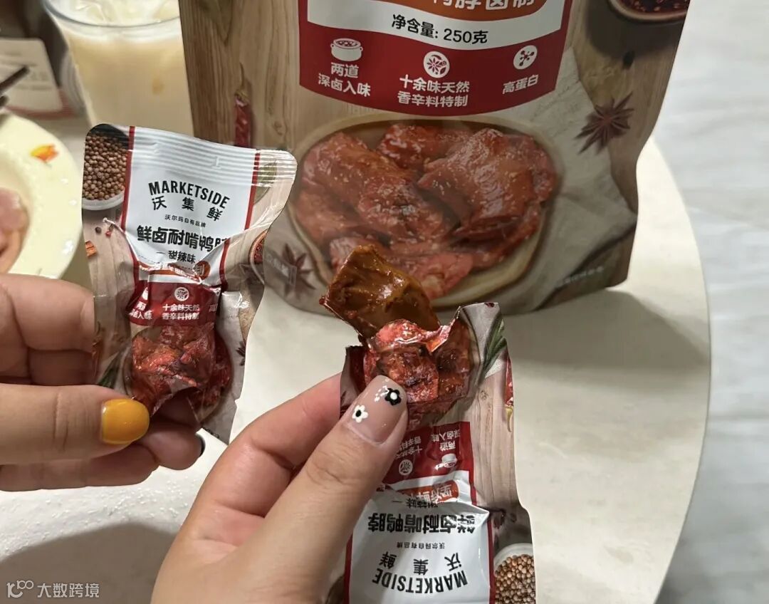 沃尔玛自有品牌沃集鲜的鲜卤耐啃鸭脖,是超人气的追剧解馋神器。它用十余味天然香辛料经两道工序卤制,甜辣口味配比适中,辣度微缓,先甜后辣还带点麻,滋味深入肉骨。配料干净,肉质紧实湿润不柴,每根肉量适中,啃起来超有乐趣。