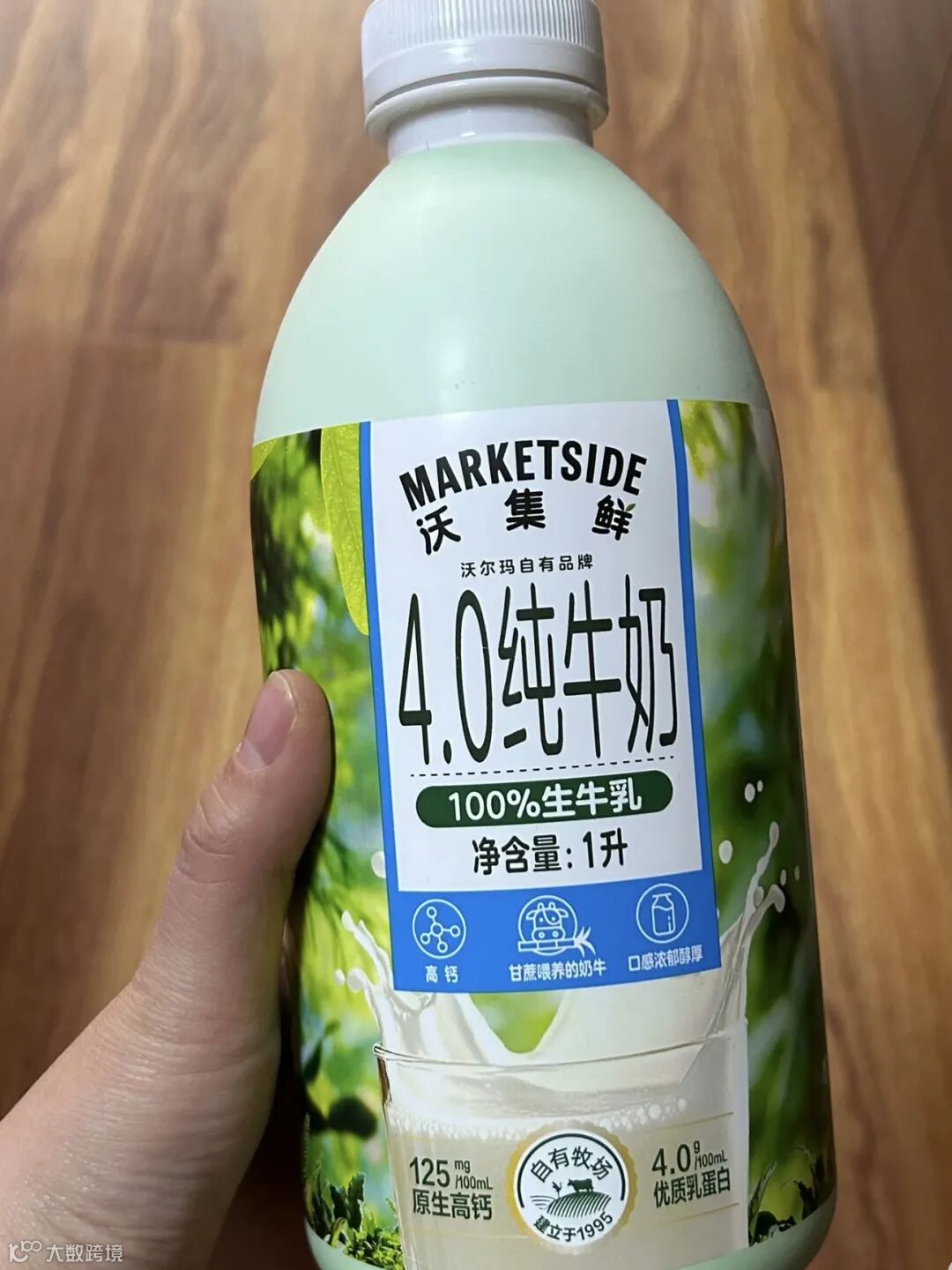 沃尔玛绿瓶牛奶是自有品牌沃集鲜的4.0纯牛奶,奶源来自广西石埠,奶牛食用含甘蔗叶的饲料,经膜过滤技术浓缩营养,每100ml含4.0g蛋白和125mg钙,配料仅生牛乳,品质经90项检测保障。