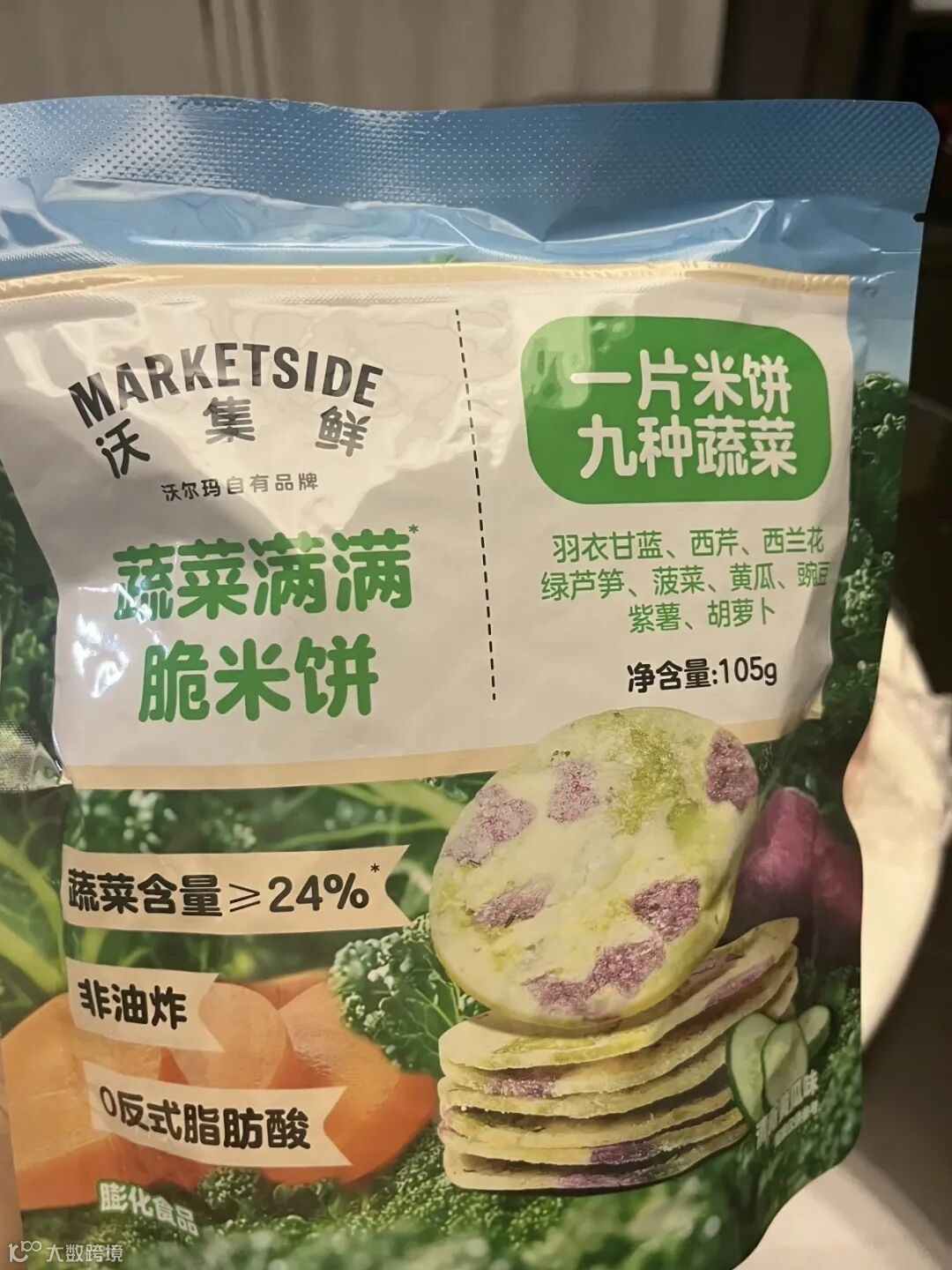 沃尔玛自有品牌沃集鲜的蔬菜满满脆米饼超值得安利!蔬菜含量≥24%,添加羽衣甘蓝、紫薯等9种真蔬菜,0白砂糖、0反式脂肪酸,非油炸工艺,配料干净健康,老人小孩和控糖人群都能放心吃。