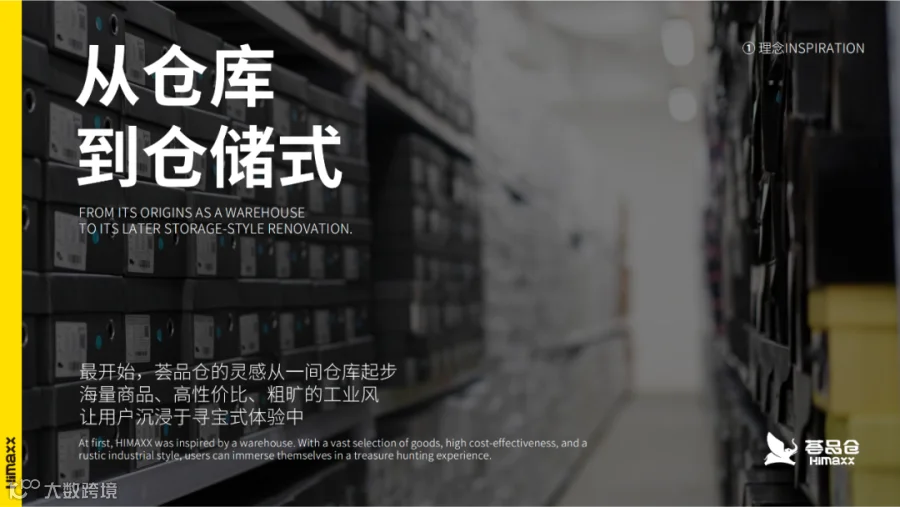 在讲理念时,也说明了荟品仓最开始时从仓库起步,没有装修的工业风,只有海量的折扣商品,顾客带着捡漏寻宝的好奇心,开始发展起来。我猜在做仓库折扣之前,还经历过外贸工厂店,商场中庭做特卖。只是他们18年就拿到资本做仓库折扣,是很早的,或许是受18年贸易战的启发吧