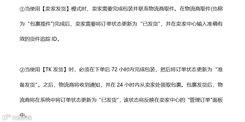 发货方式分为【TK发货】与【卖家发货】:前者需使用平台指定物流,后者可自主选择跨境物流服务商[[k]]