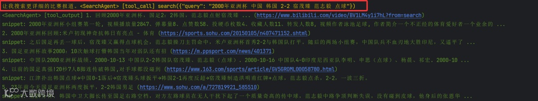 第一步: Youtu-Agent根据问题提取了关键字进行搜索结果并获取结果,如下图所示: