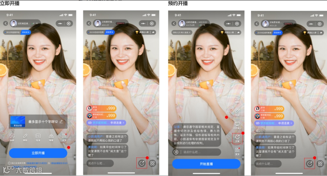 设置完成之后就可以开播啦,最重要的是要提前点击分享,让用户可以进来预约、看直播哦。