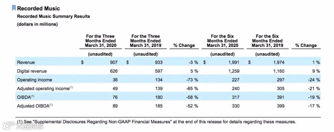 但即使是巨头,也依旧摆脱不了亏损的命运。最近华纳音乐发布2020年Q1财报,截至3月底的三个月内,WMG的录制音乐收入同比下降2.8%,而净亏损则达到了7400万美元。