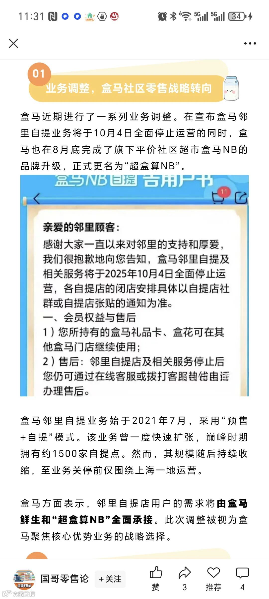 2025年风云突变,被认为是社区团购代表的美团优选在6月份宣布关停,美团推出自营的小象超市,用线上下单,30分钟送到的闪购模式重做生鲜电商。而在这之前,蒋凡从负责海外电商市场重归淘宝,重振淘宝的重大举措,就是推出闪购,合并饿了么外卖。盒马作为美团旗下小象超市的竞对,也重新归入到了大淘宝生态,线上购买盒马商品,可以通过淘宝下单,闪送到家。盒马自提的加盟模式已经不符合大淘宝的战略需求,被紧急下线,而被前盒马CEO吐槽的前置仓模式,将大规模的上线。