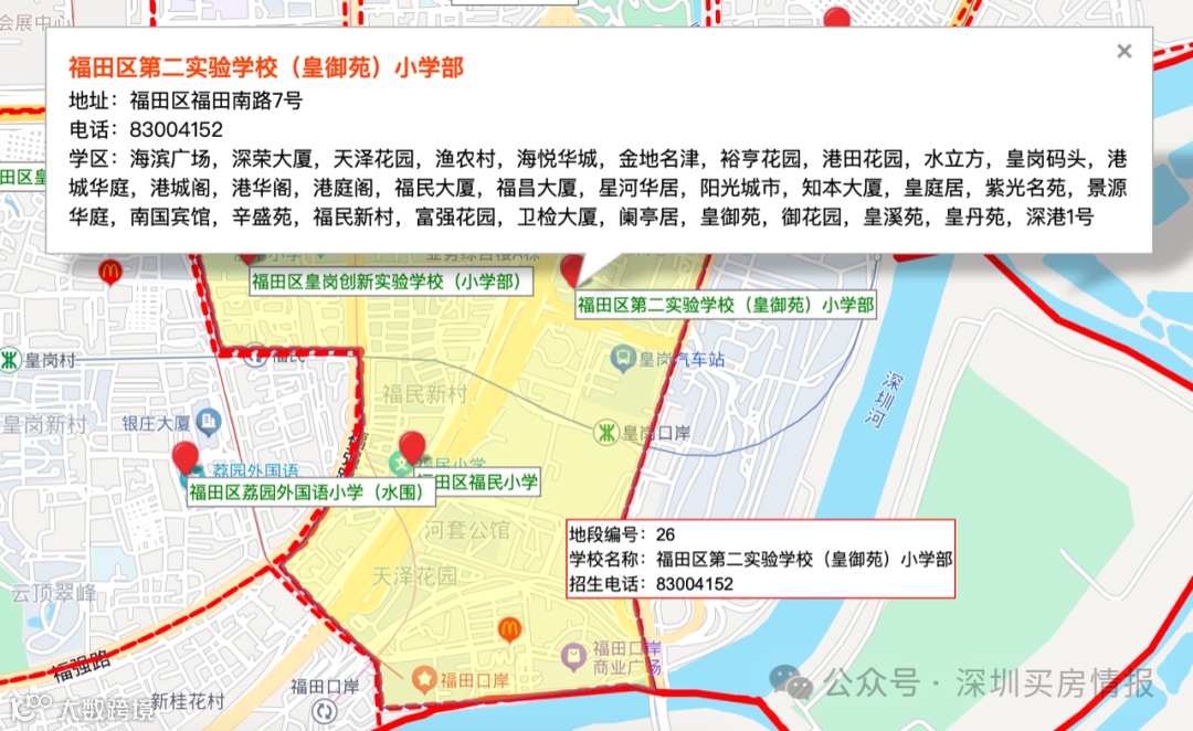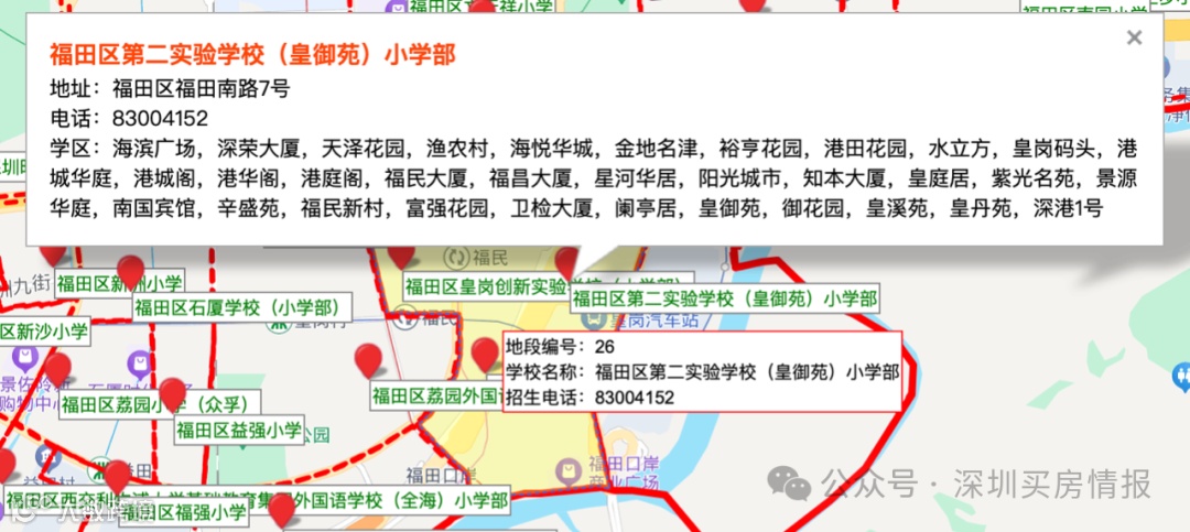 海滨广场,深荣大厦,天泽花园,渔农村,海悦华城,金地名津,裕亨花园,港田花园,水立方,皇岗码头,港城华庭,港城阁,港华阁,港庭阁,福民大厦,福昌大厦,星河华居,阳光城市,知本大厦,皇庭居,紫光名苑,景源华庭,南国宾馆,辛盛苑,福民新村,富强花园,卫检大厦,阑亭居,皇御苑,御花园,皇溪苑,皇丹苑,深港1号