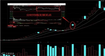 买点二,右侧低吸:价格站上分时均线,在均线盘整,有明显支撑,买确定性。
