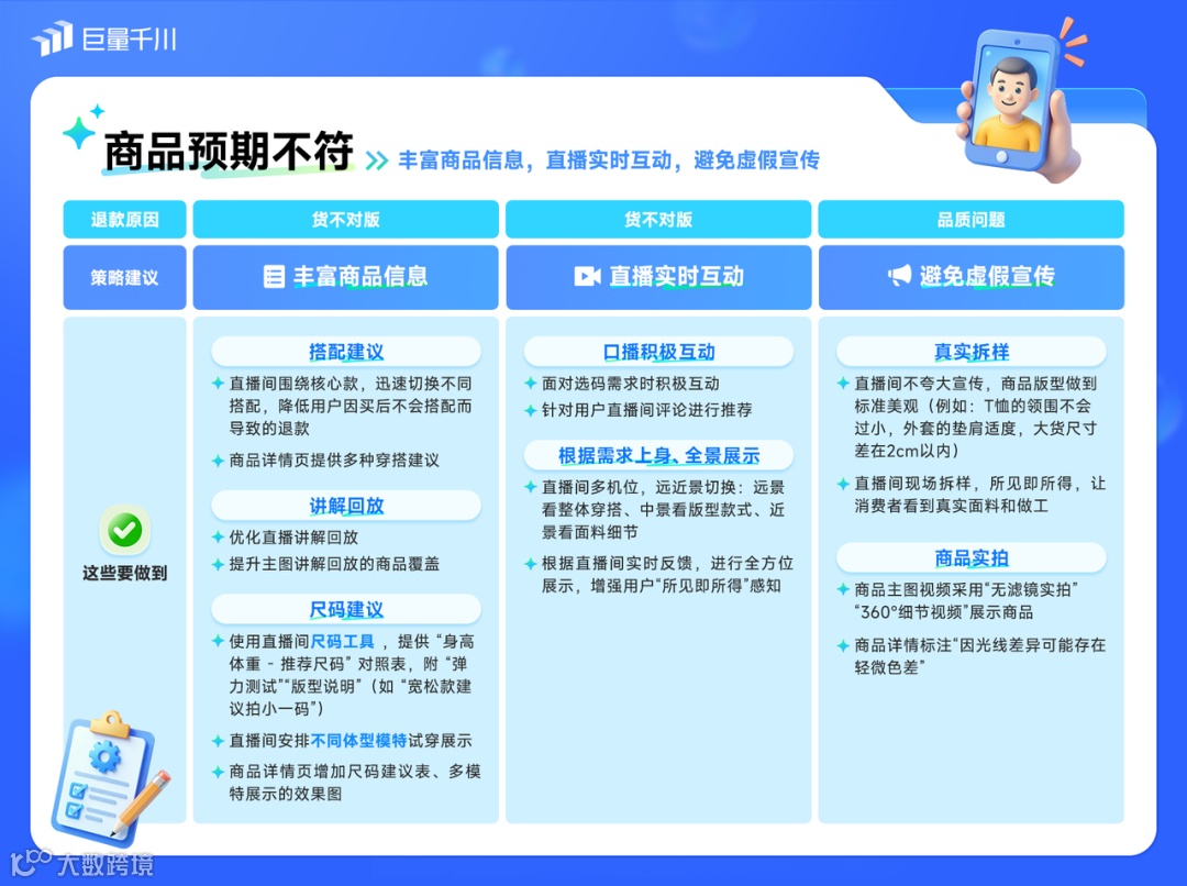 「商品预期不符」 >> 丰富商品信息,直播实时互动,避免虚假宣传