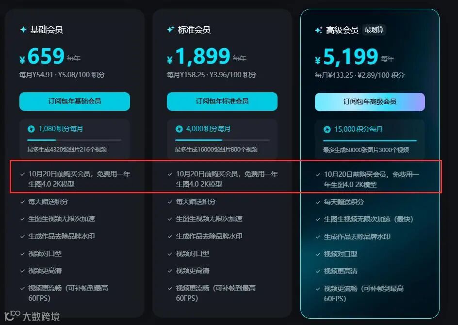 参与即梦平台限时优惠活动,10月20日前购买会员,免费用一年生图4.0 2K模型。