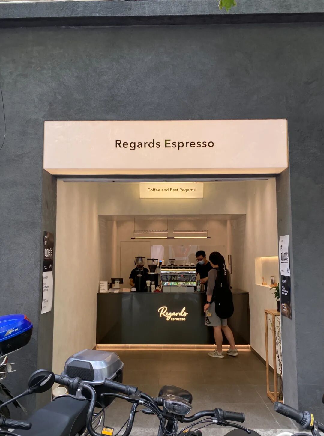 约朋友在这里喝咖啡。一家名曰“嗲”的小型咖啡馆(Dia Coffee),似乎散发着上海小型咖啡馆的共性:掩映在法国梧桐的街道中,精致,安静,守着自我的空间和调子。同样也是在延平路上,这家Regards Espresso只有一个小小的门面,门口堆放着自行车,梧桐树在夏日绿得真切。早晨路过,买了咖啡带走,一路散步,一路喝。