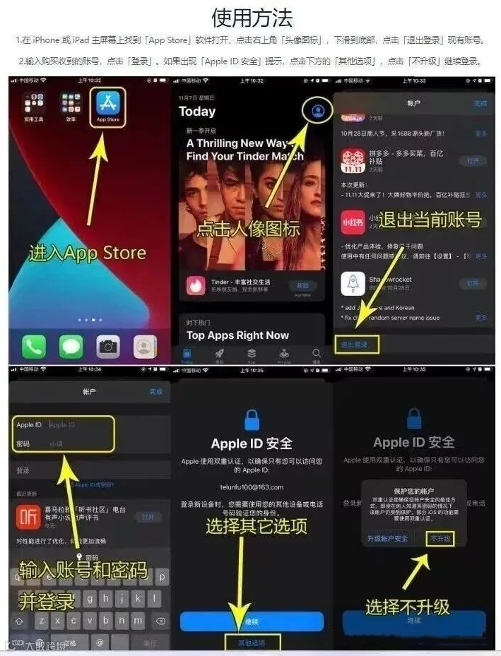 2.地址资料信息都是提前设定好的,这些苹果ID都是可以直接登录苹果应用商店的,不要试图更改地址信息以及密码密保,会造成账号不可用的情况;