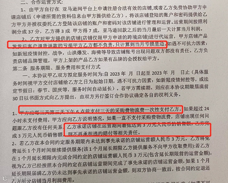 采购款3天内支付,物流款也是,那么上面我们总结的风险都来了,其实套路很简单,相信很多卖家或者想入局的工贸企业及创业团队,都可以看的很清楚,首先该代运营公司让账户在短时间内快速出单(当然思路方法很多种哈,小编预计可能是无差别跟卖、铺货,或者自养买家号批量suuua单),然后利用3天支付采购和物流款的时间差,先收取到60%销售额款,随后退款,不发货,或者发货不对板,反正钱不退给卖家,那么,该代运营公司相当于是一个月不到,如果仅仅只按照2万美金销售额,6.9汇率,代运营公司一月净利润82800…………