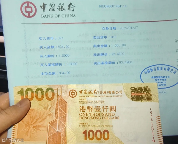 第四步:核对现金:收到港币后,检查纸币面额(常见 1000 元、500 元、100 元,少量 50 元、20 元、10 元),确认无破损、无假币(港币有防伪水印、金属线等标识,可当场让柜员协助验证)。