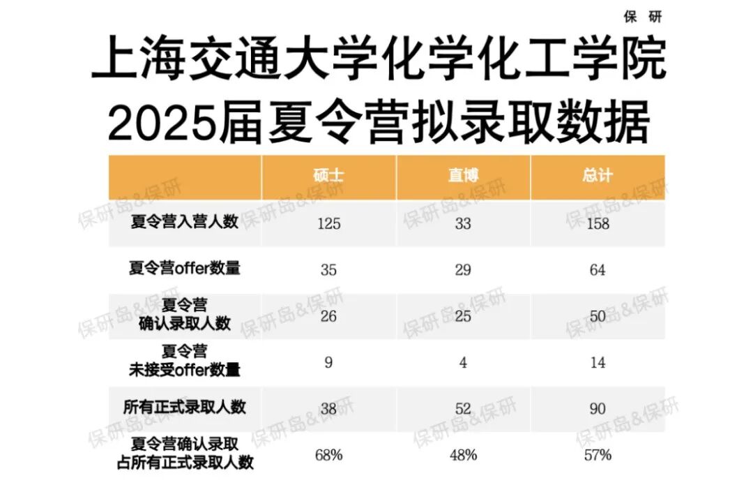 从上海交通大学化学化工学院2025届夏令营拟录取数据来看,其共计入营158人,其中64人获得offer(优营率约为41%),化学化工学院夏令营优营政策为“按接收规模从高到低录取,额满为止”。