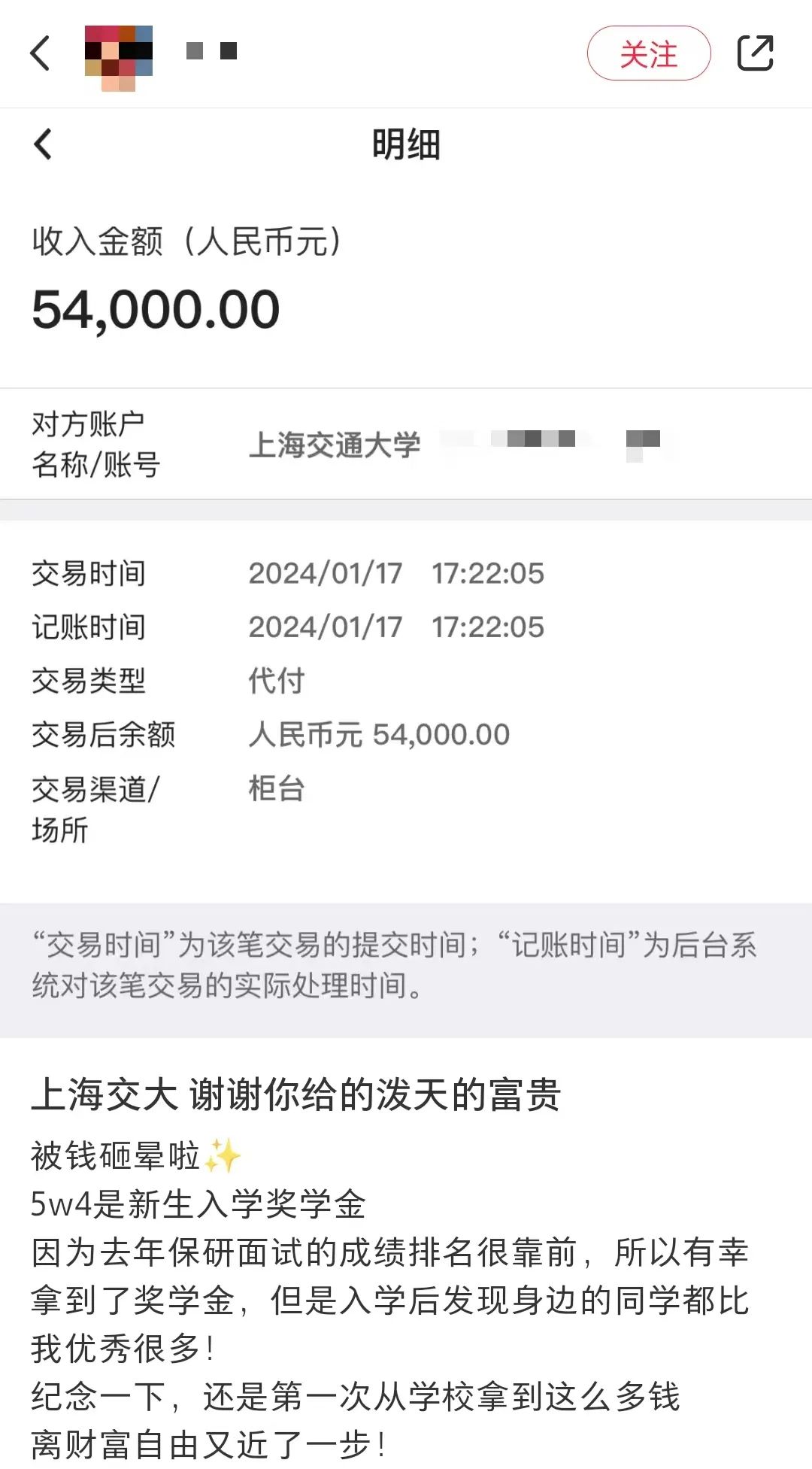 有上岸交大的保研er反馈,部分专业若面试成绩排名靠前,拿到的新生奖学金可达五位数。