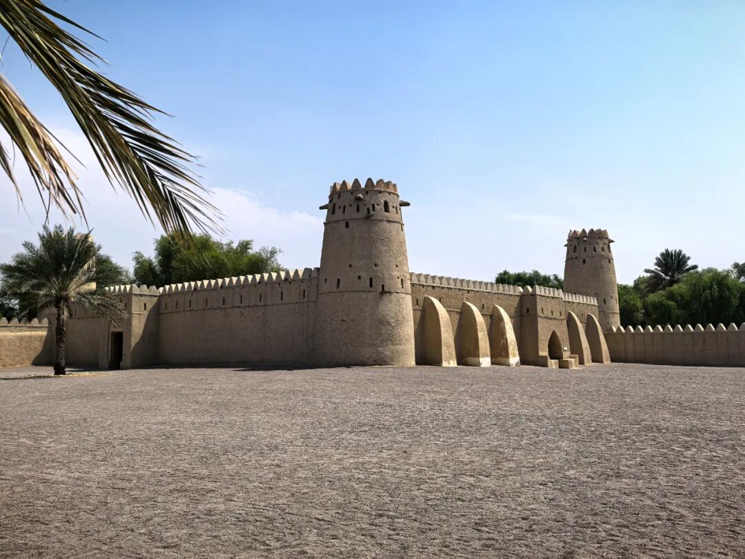 我不知道。但我知道,原意为“泉水”的阿莱茵是阿联酋最大的绿洲。因为这些绿洲,阿莱茵被誉为“海湾花园之城”。也是因为这些绿洲,阿莱茵成了世界上最古老的永久定居点之一,人类连续定居在此地的历史超过4千年。有绿洲便有了农业,也自然成了商人理想的歇脚地,因而阿莱茵自古以来都是沙漠贸易路线中的重要中转站,直到现在仍然被很多人青睐,其中就包括我。在离阿莱茵市中心不远的地方,有一个扎哈里城堡(Al Jahili Fort)。该城堡位于绿洲之中,地处战略要地,水源丰富,农田充足。它建于19世纪末,是当地首领为保护椰枣种植者而建的。