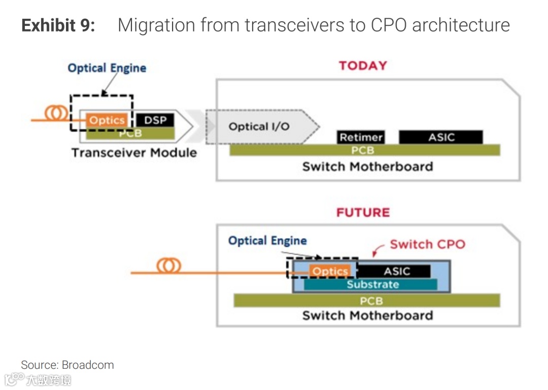 图表 :从传统收发器到 CPO 架构的演进