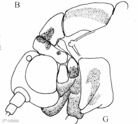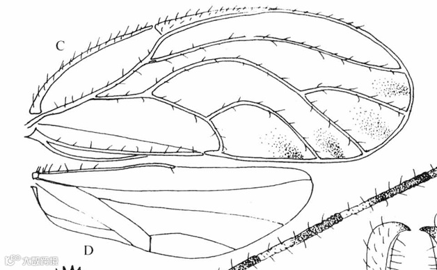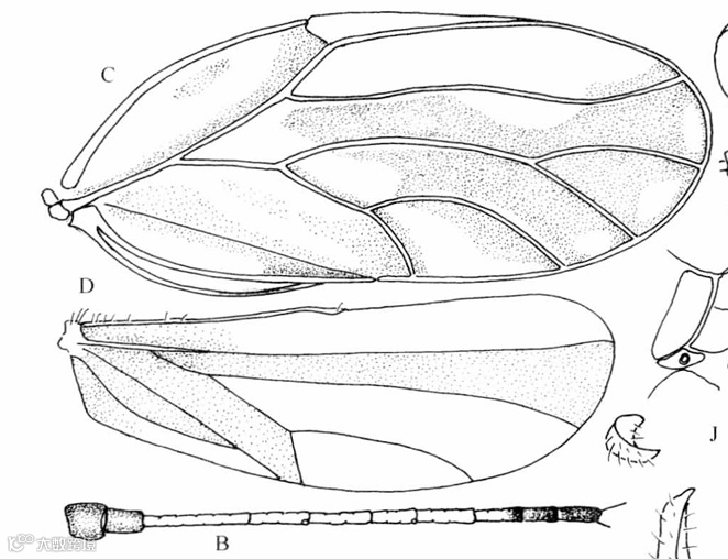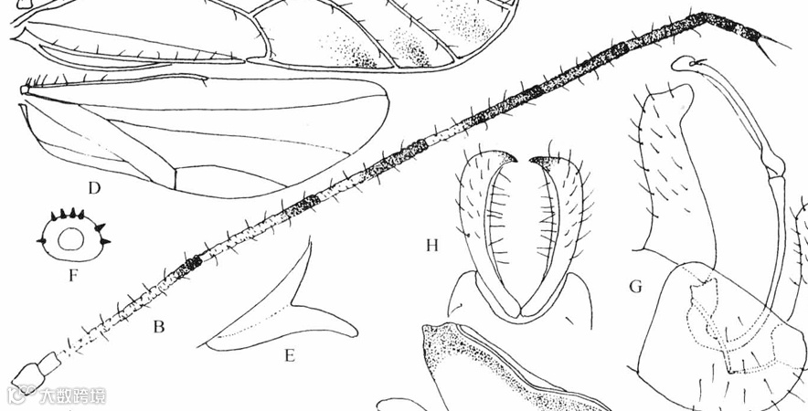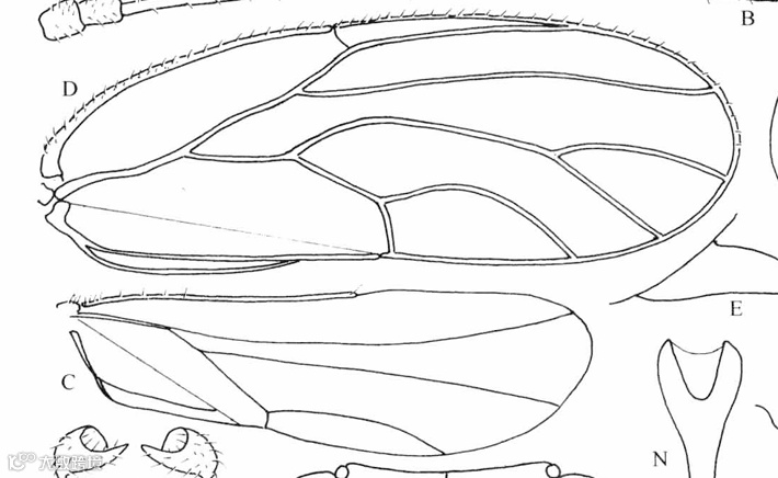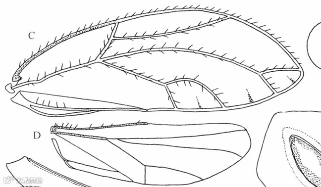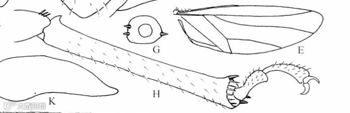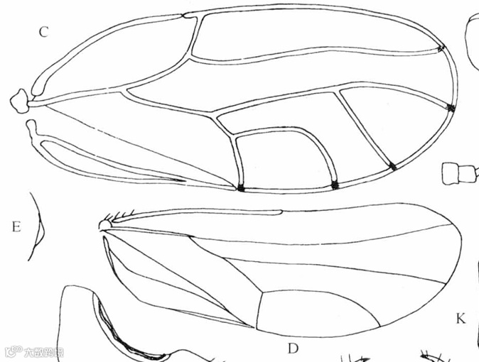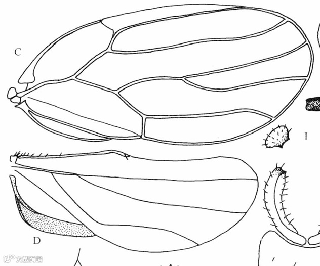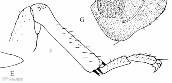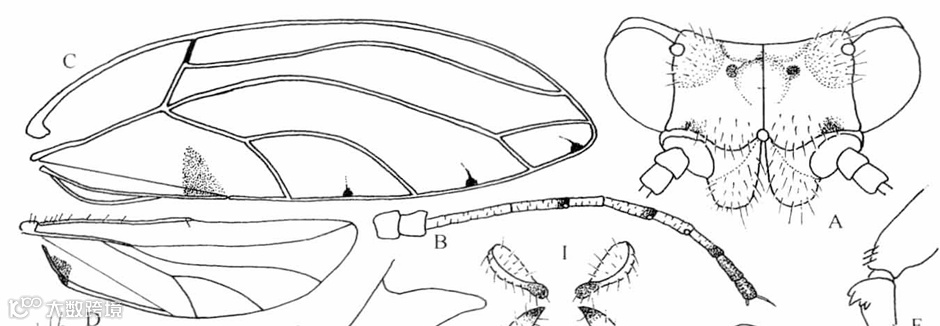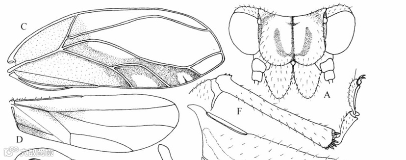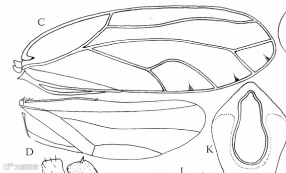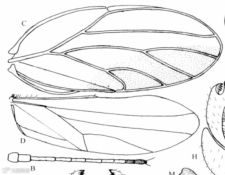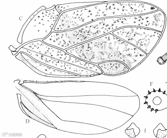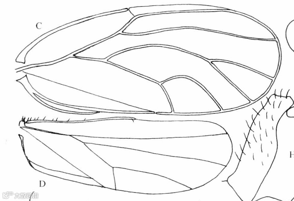 A.头;B.触角;C.前翅;D.后翅;G.头、胸侧视,示前胸侧板