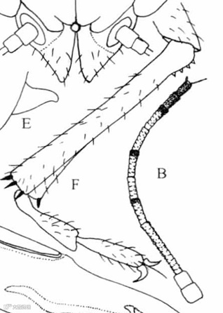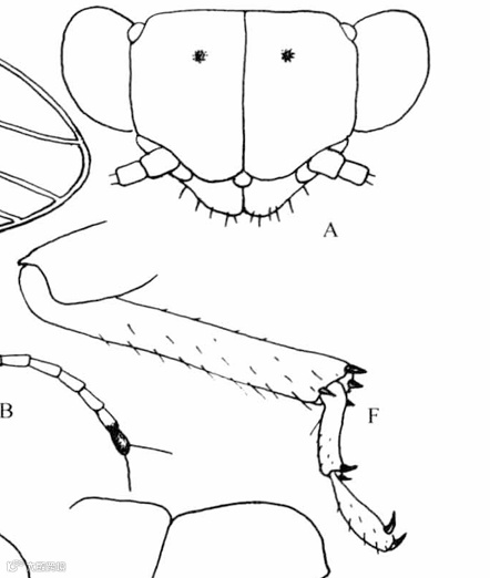A.头;B触角;C前翅;D.后翅;F.后足